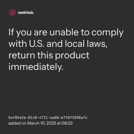 π€ shareIf you are unable to comply with U.S. and local laws, return this product immediately.