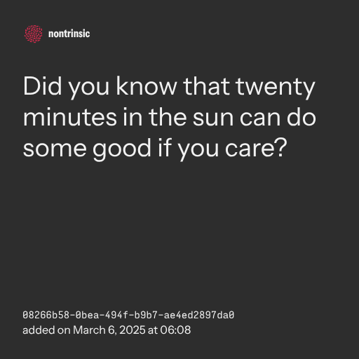 📤 shareDid you know that twenty minutes in the sun can do some good if you care?