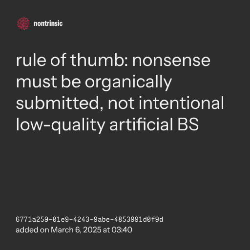 📤 sharerule of thumb: nonsense must be organically submitted, not intentional low-quality artificial BS