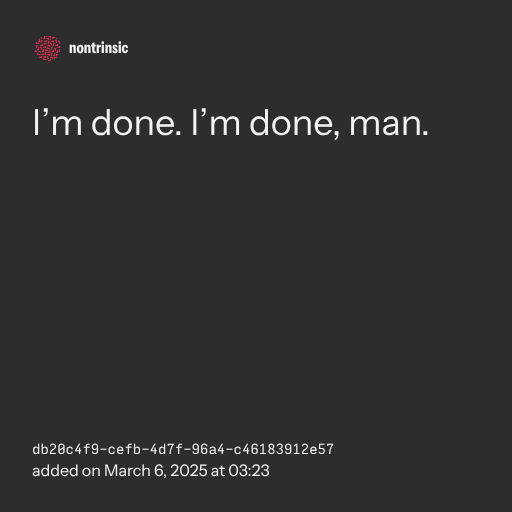 📤 shareI’m done. I’m done, man.