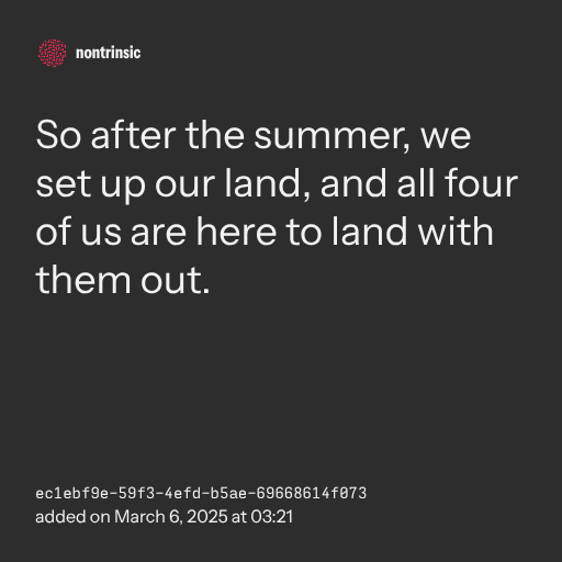 📤 shareSo after the summer, we set up our land, and all four of us are here to land with them out.