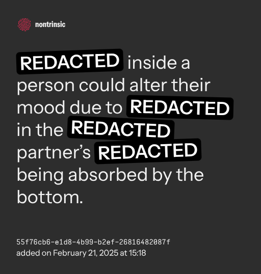 📤 shareREDACTED inside a person could alter their mood due to REDACTED in the REDACTED partner’s REDACTED being absorbed by the bottom.