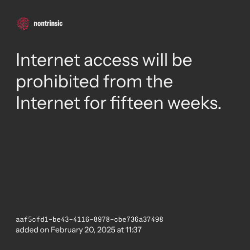 📤 shareInternet access will be prohibited from the Internet for fifteen weeks.