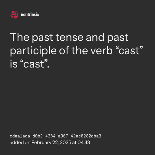 📤 shareThe past tense and past participle of the verb “cast” is “cast”.