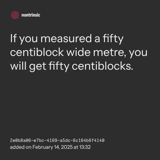 📤 shareIf you measured a fifty centiblock wide metre, you will get fifty centiblocks.