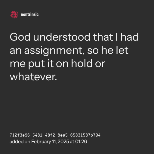 📤 shareGod understood that I had an assignment, so he let me put it on hold or whatever.
