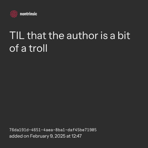 📤 shareTIL that the author is a bit of a troll
