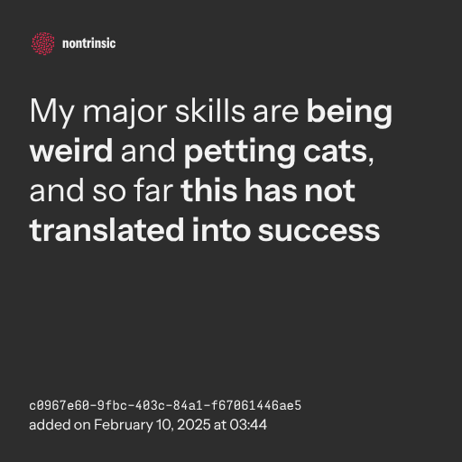 📤 shareMy major skills are being weird and petting cats, and so far this has not translated into success