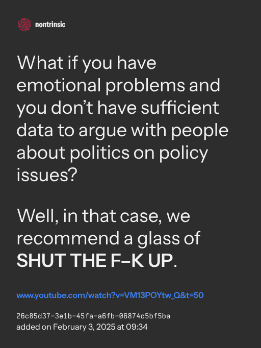 π€ shareWhat if you have emotional problems and you don’t have sufficient data to argue with people about politics on policy issues?