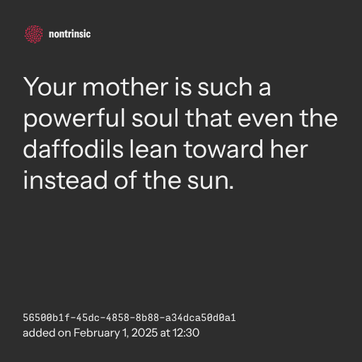π€ shareYour mother is such a powerful soul that even the daffodils lean toward her instead of the sun.