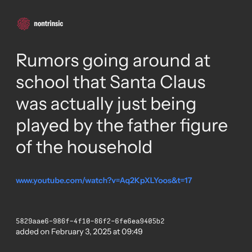 π€ shareRumors going around at school that Santa Claus was actually just being played by the father figure of the household