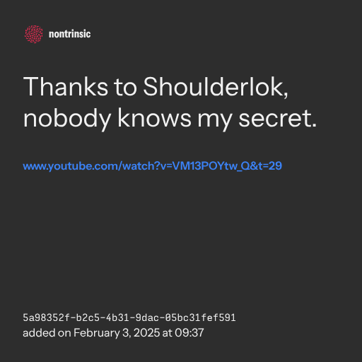 π€ shareThanks to Shoulderlok, nobody knows my secret.