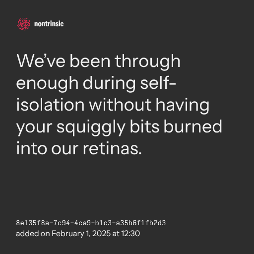 π€ shareWe’ve been through enough during self-isolation without having your squiggly bits burned into our retinas.
