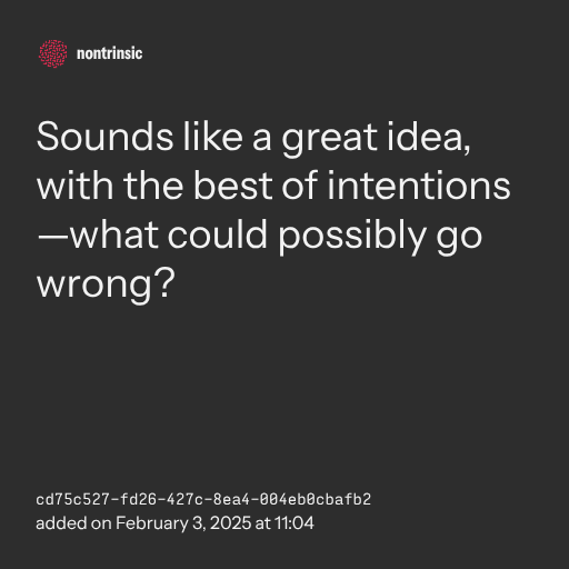 π€ shareSounds like a great idea, with the best of intentionsβwhat could possibly go wrong?
