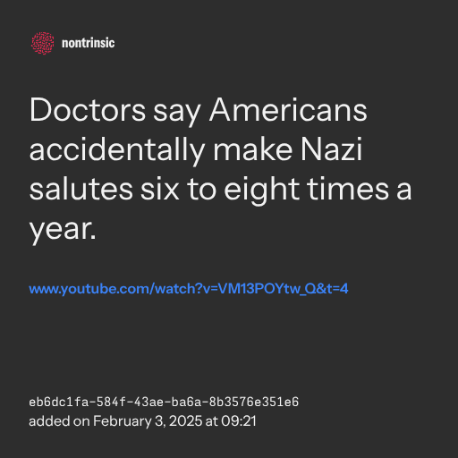 π€ shareDoctors say Americans accidentally make Nazi salutes six to eight times a year.