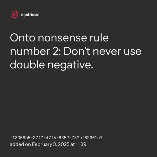 π€ shareOnto nonsense rule number 2: Don’t never use double negative.