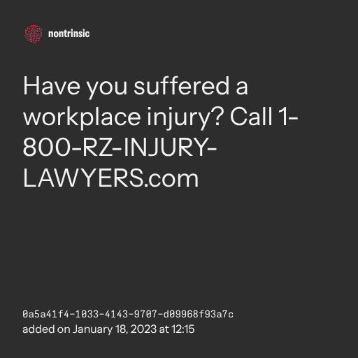 π€ shareHave you suffered a workplace injury? Call 1-800-RZ-INJURY-LAWYERS.com