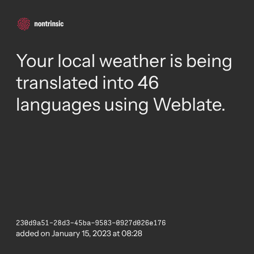 π€ shareYour local weather is being translated into 46 languages using Weblate.