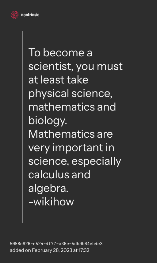 To become a scientist, you must at least take physical science, mathematics and biology. Mathematics are very important in science, especially calculus and algebra.