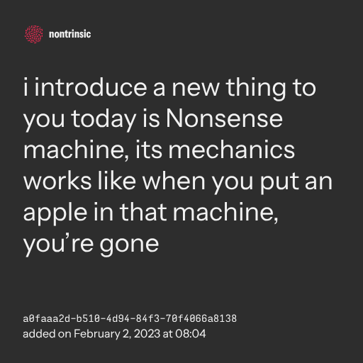 π€ sharei introduce a new thing to you today is Nonsense machine, its mechanics works like when you put an apple in that machine, you’re gone
