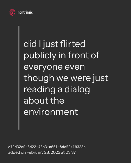 π€ sharedid I just flirted publicly in front of everyone even though we were just reading a dialog about the environment