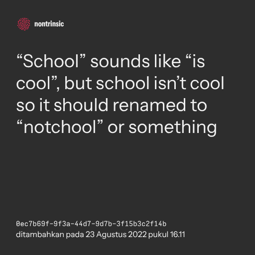 š¤ share“School” sounds like “is cool”, but school isn’t cool so it should renamed to “notchool” or something