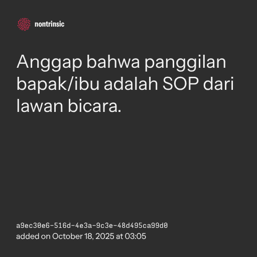 📤 shareAnggap bahwa panggilan bapak/ibu adalah SOP dari lawan bicara.