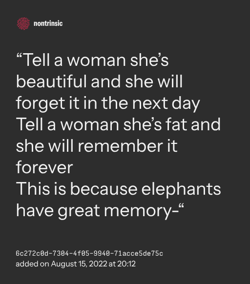 π€ share“Tell a woman she’s beautiful and she will forget it in the next day