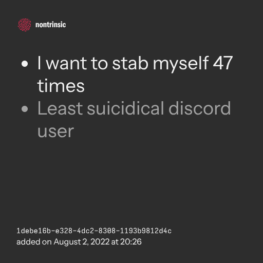 - Least suicidical discord user