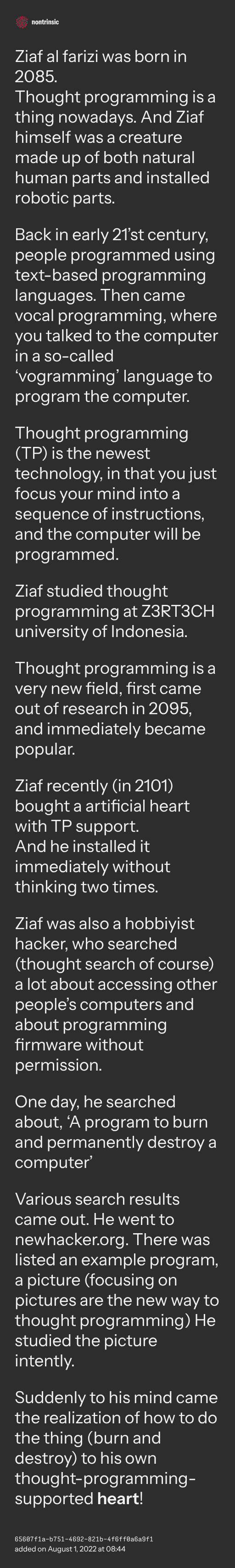 And he slept. While he was sleeping, without knowing what he was doing, he dreamt about that dangerous thought program.
