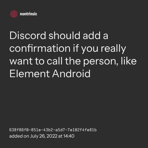 📤 shareDiscord should add a confirmation if you really want to call the person, like Element Android