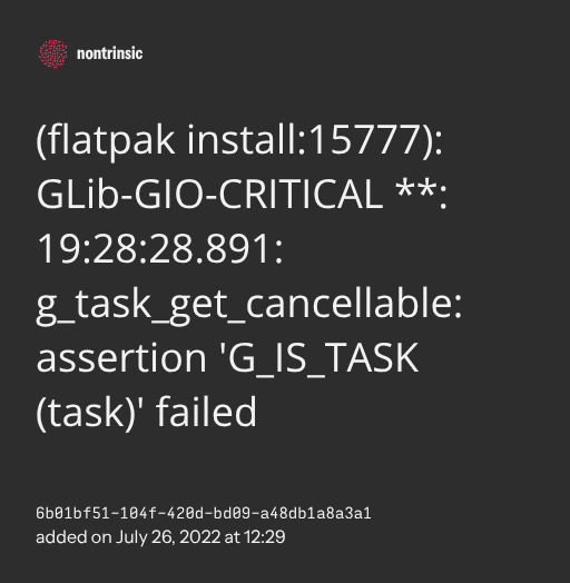 📤 share(flatpak install:15777): GLib-GIO-CRITICAL **: 19:28:28.891: g_task_get_cancellable: assertion 'G_IS_TASK (task)' failed