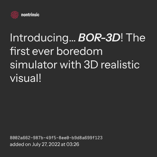 📤 shareIntroducing… BOR-3D! The first ever boredom simulator with 3D realistic visual!