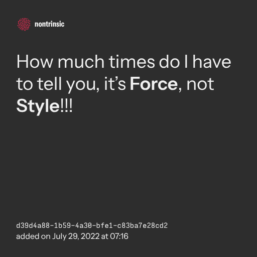 📤 shareHow much times do I have to tell you, it’s Force, not Style!!!