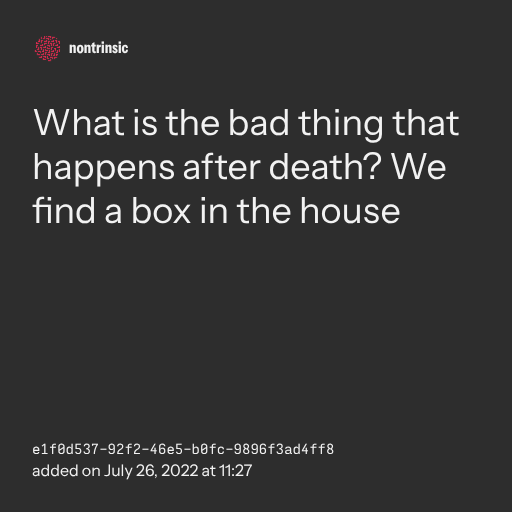 📤 shareWhat is the bad thing that happens after death? We find a box in the house