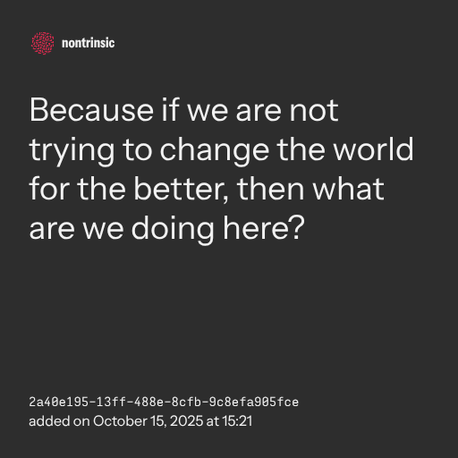 📤 shareBecause if we are not trying to change the world for the better, then what are we doing here?