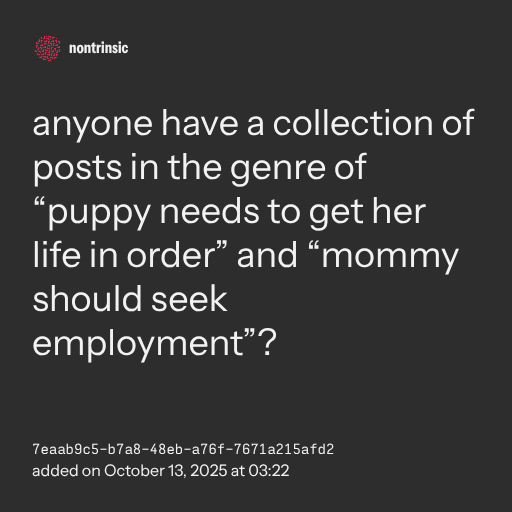 📤 shareanyone have a collection of posts in the genre of “puppy needs to get her life in order” and “mommy should seek employment”?