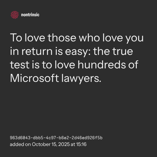 📤 shareTo love those who love you in return is easy: the true test is to love hundreds of Microsoft lawyers.