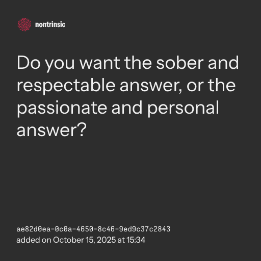 📤 shareDo you want the sober and respectable answer, or the passionate and personal answer?