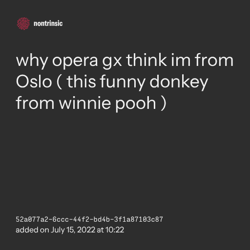 📤 sharewhy opera gx think im from Oslo ( this funny donkey from winnie pooh )