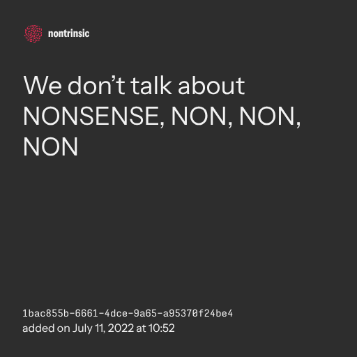 π€ shareWe donβt talk about NONSENSE, NON, NON, NON