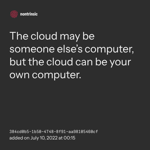 π€ shareThe cloud may be someone else’s computer, but the cloud can be your own computer.