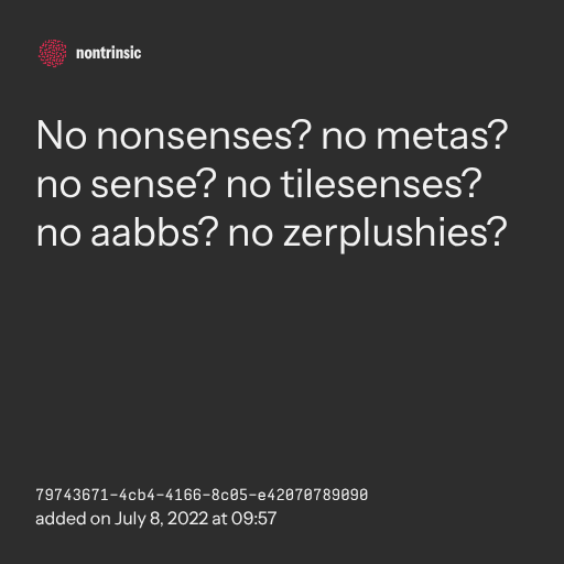 π€ shareNo nonsenses? no metas? no sense? no tilesenses? no aabbs? no zerplushies?