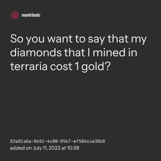 π€ shareSo you want to say that my diamonds that I mined in terraria cost 1 gold?