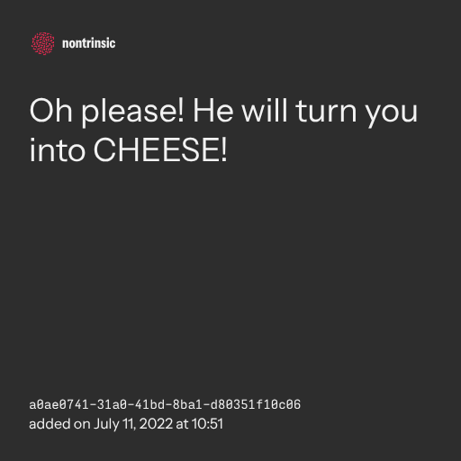 π€ shareOh please! He will turn you into CHEESE!