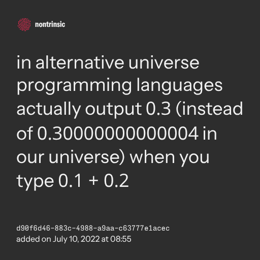 programming languages actually output 0.3 (instead of 0.30000000000004 in our universe) when you type 0.1 + 0.2