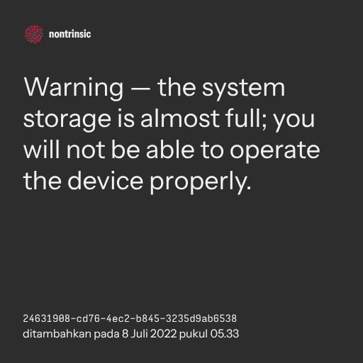๐ค shareWarning โ the system storage is almost full; you will not be able to operate the device properly.