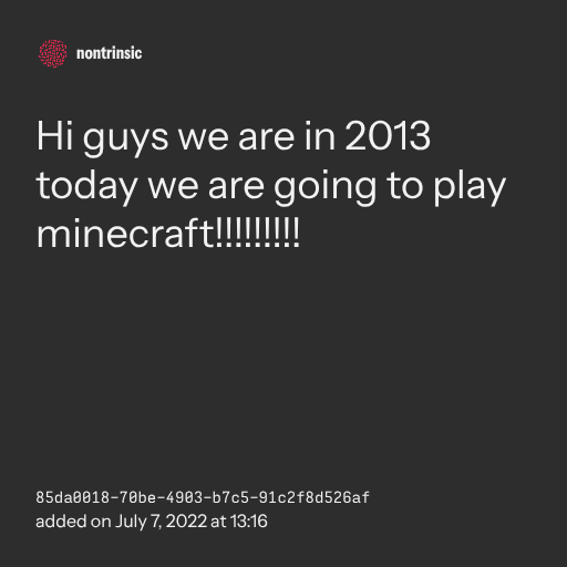 ๐ค shareHi guys we are in 2013 today we are going to play minecraft!!!!!!!!!