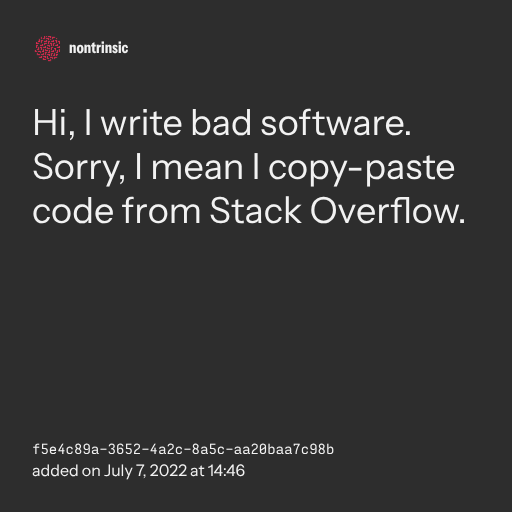 ๐ค shareHi, I write bad software. Sorry, I mean I copy-paste code from Stack Overflow.