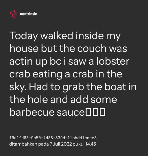 ๐ค shareToday walked inside my house but the couch was actin up bc i saw a lobster crab eating a crab in the sky. Had to grab the boat in the hole and add some barbecue sauce๐ญ๐ญ๐ญ